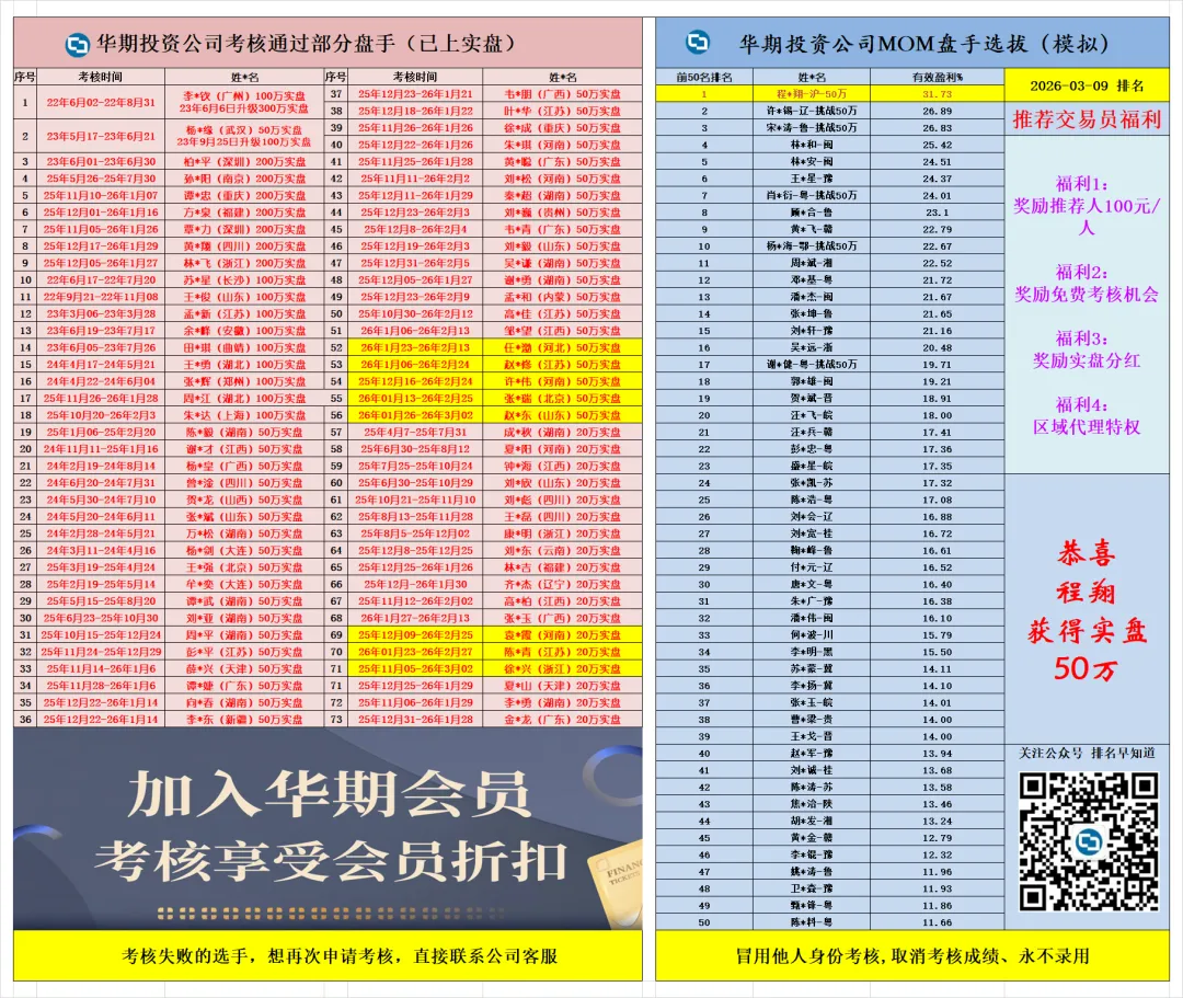 ↓华期考核前50名排行榜↓
