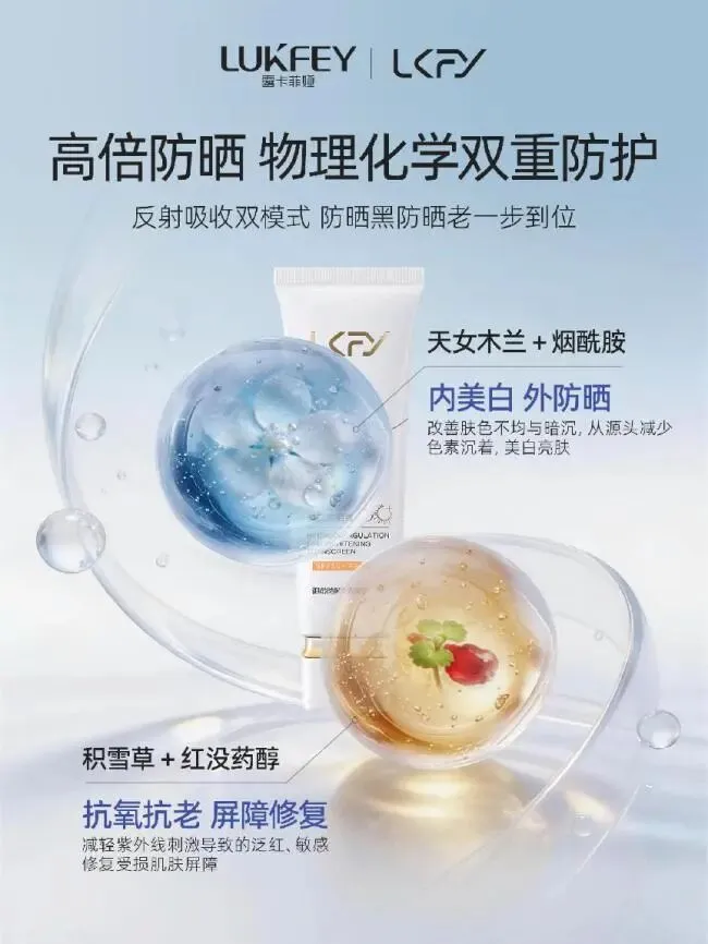 露卡菲娅美白防晒霜的质地轻薄如乳霜,上脸后感觉水润透气,毫无黏腻感,让肌肤自由呼吸。它的防晒、隔离、养肤三合一的功效,更是让你在化妆前无需再涂抹隔离霜,简化你的护肤步骤。10S成膜,防晒时长12.5h,且防水防汗,不假白,不搓泥,不闷痘。