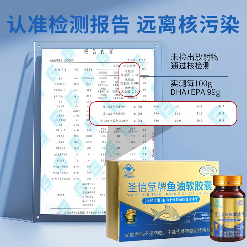产品获得国家市场监管总局“蓝帽子”保健食品认证(批准文号:食健备G202037001211)及IFOS五星认证。第三方权威检测证实,每100g产品中DHA含量达44.9g,EPA含量高达54.1g,EPA+DHA总含量达97.2%,实现科学黄金配比。
