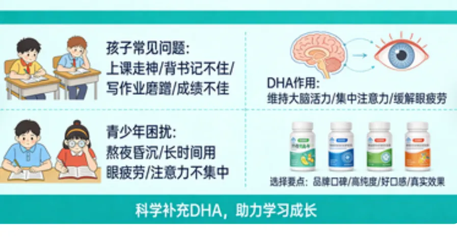 很多家长都会有这样的困惑:孩子上课容易走神、背书记不住,写作业磨磨蹭蹭,明明很努力,成绩却一直没起色;青少年备考期间,熬一会儿夜就昏昏沉沉,长时间看书刷题,眼睛干涩、注意力不集中,想尽各种办法都没明显改善。其实,这背后可能和一种关键营养的补充有关——DHA。