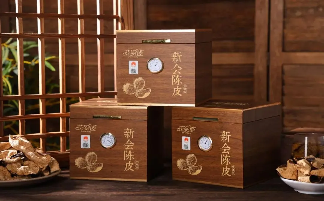 在工艺层面,花姿盛坚持传统三瓣手开,让果皮纤维走向顺势舒展,减少机械切割带来的组织破坏。随后以日光慢晒的方式,使水分循序退去、芳香物质稳步凝聚,而非以高温急火逼出表面色泽。入仓后,环境长期控制在20—25℃、湿度60%—70%的洁净区间,让陈化在可控节律中推进。仓内空气流动与光线管理均保持克制,拒绝任何催陈手段,让时间成为唯一的“工匠”。正是在这种不急不躁的节拍里,果皮内部的结构逐渐松弛,香气层次由清新走向沉稳,完成从“新会柑香”到“陈韵骨架”的过渡。
