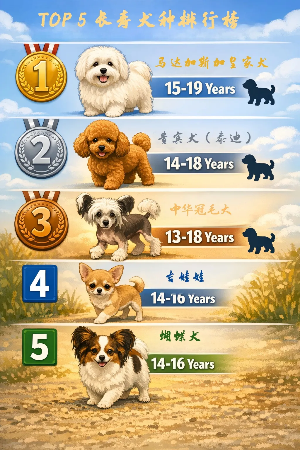 5 | 蝴蝶犬 | 14-16年 | 超小型 |