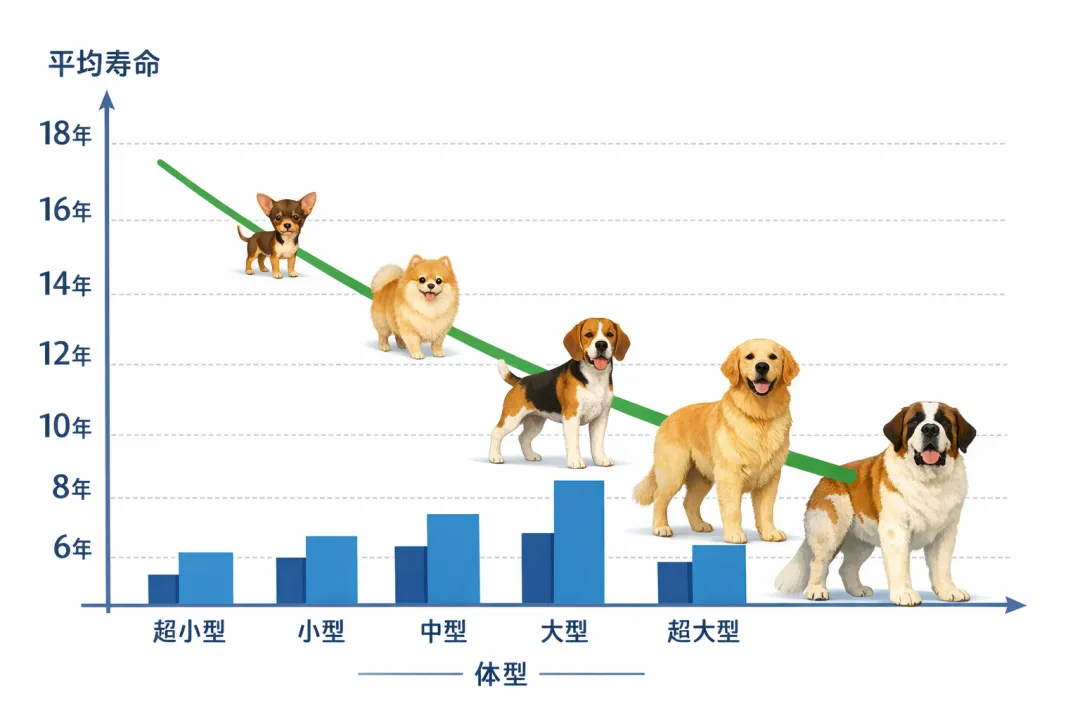💡 例外:澳洲牧牛犬虽然是中型犬,但寿命可达12-16年。