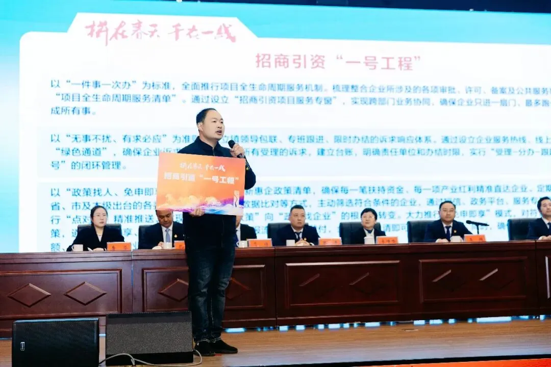 蓝图确定之后,关键在于落实。在“承诺践诺”环节,围绕招商引资“一号工程”“小而美”场景建设等六大任务,各牵头负责人逐一上台宣读攻坚承诺书,以明确举措、刚性机制确保各项工作落到实处。