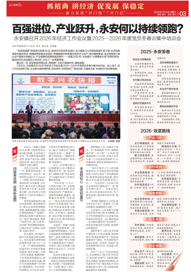 “2026年是‘十五五’开局的关键之年,永安既面临区域竞争加剧、自身短板显现的‘严峻挑战’,更拥有战略机遇叠加、园镇融合加速的‘空前窗口’。”报告全面总结全镇经济社会发展成绩,深入分析当前发展机遇与挑战,明确2026年聚焦产业兴旺、乡村振兴、城镇更新、民生幸福、安全稳定五大重点方向,推动高质量发展走深走实。