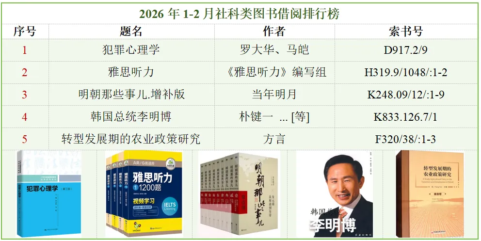 一、2026年1-2月社科类图书借阅排行榜