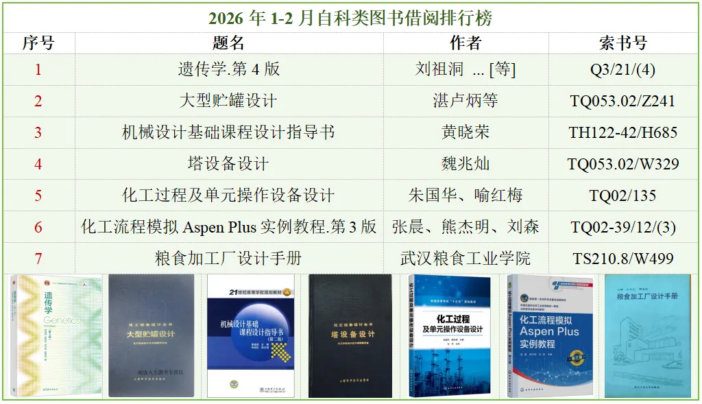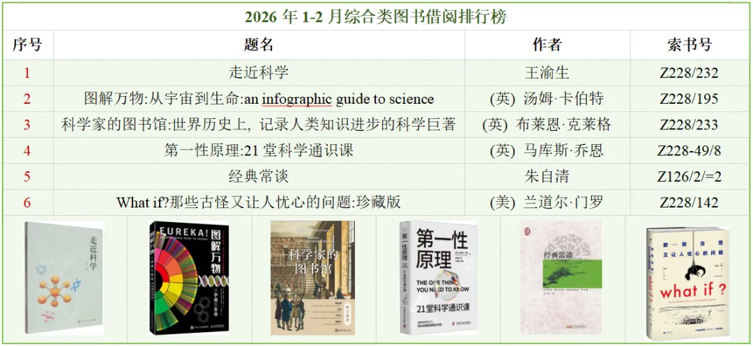 二、 2026年1-2月自科类图书借阅排行榜