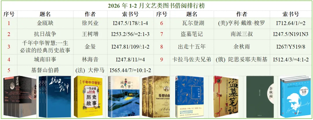 三、 2026年1-2月文艺类图书借阅排行榜