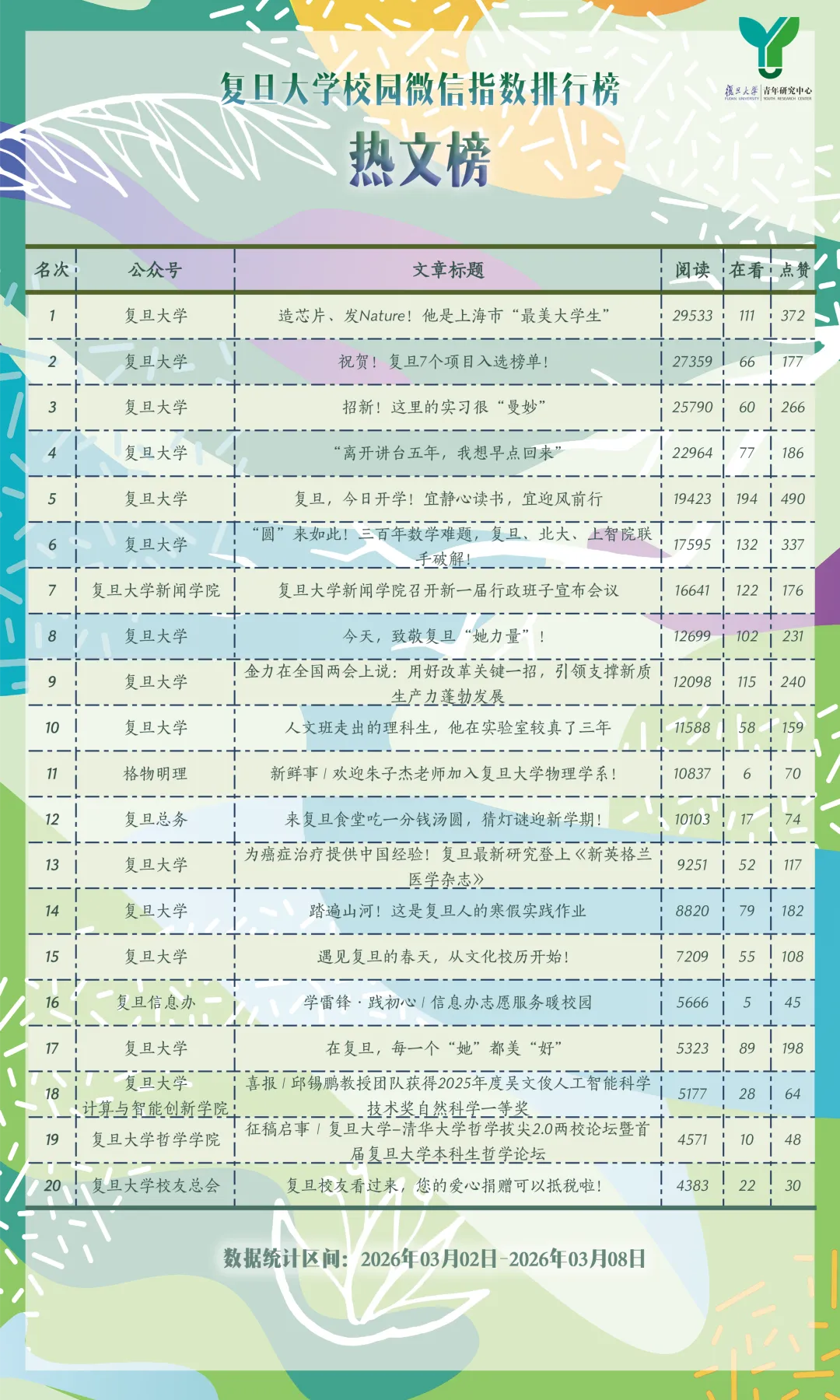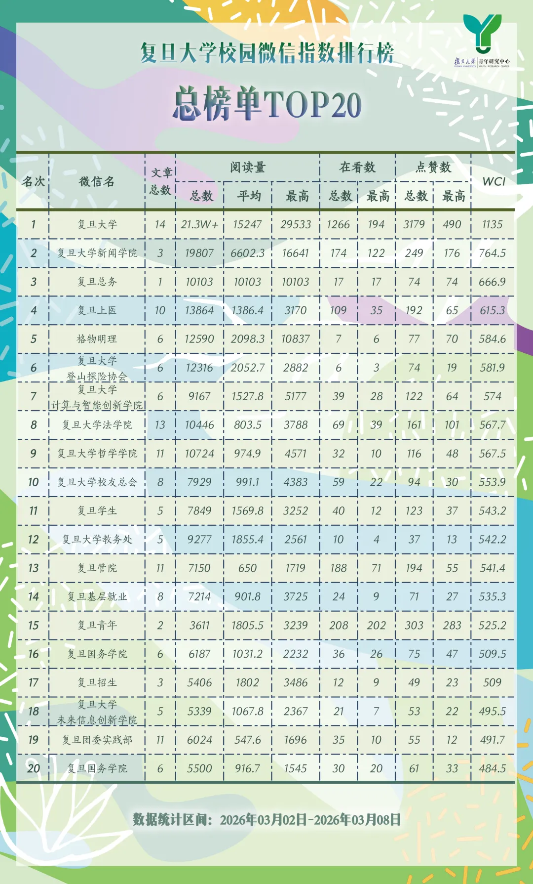 榜单由复旦大学青年研究中心独家制作、维护。