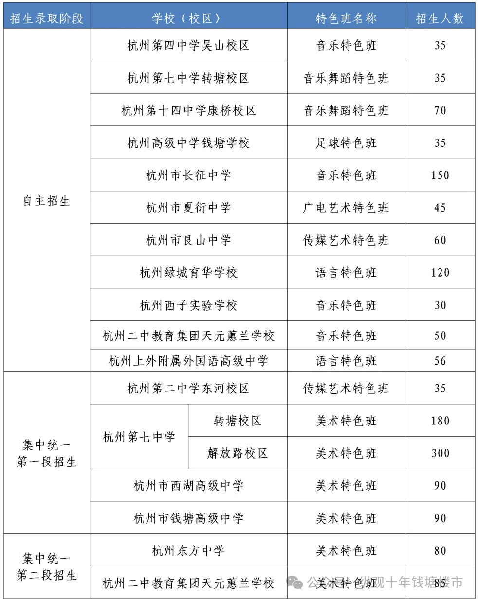 杭州市中小学生艺术团各高中分团所在学校(校区),可招收初中教育阶段获浙江省学生艺术特长水平A级证书(相关项目)者。