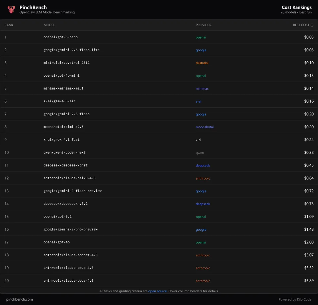 PinchBench 官网🔗 https://pinchbench.com/