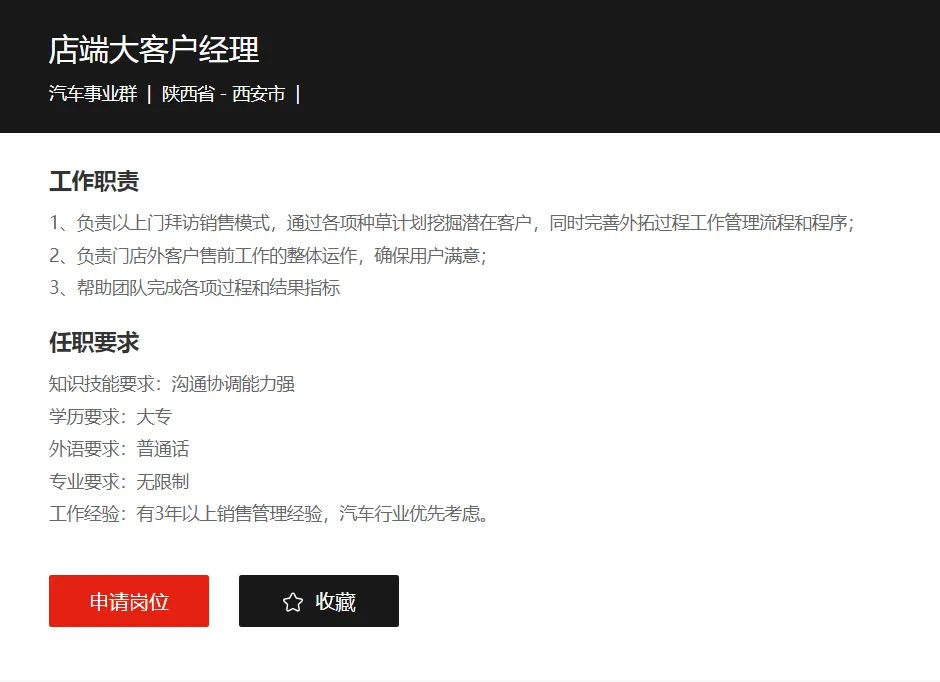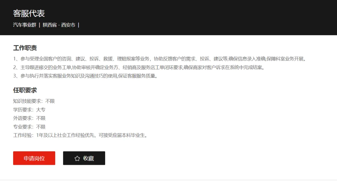 选择【社会招聘】-地址选择【西安】-点击对应岗位-申请岗位
