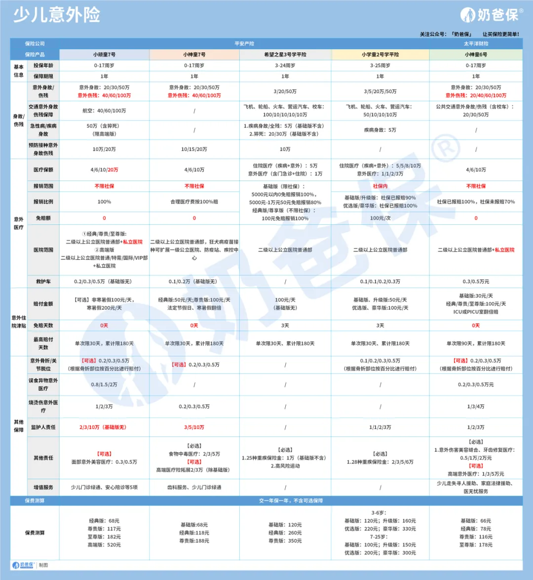 目前市面上比较不错的几款儿童意外保险产品,我推荐这几款: