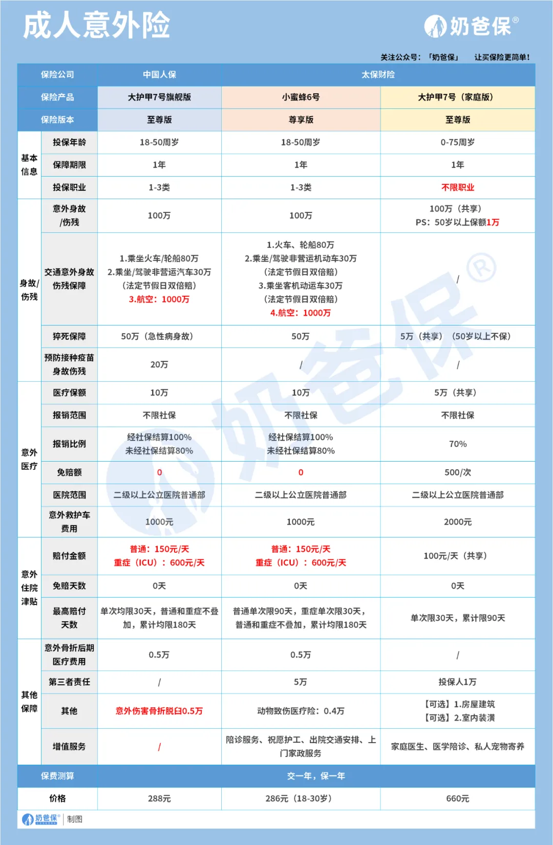 我们看哪款保障内容符合自己需求、性价比最高,就可以闭眼入了。