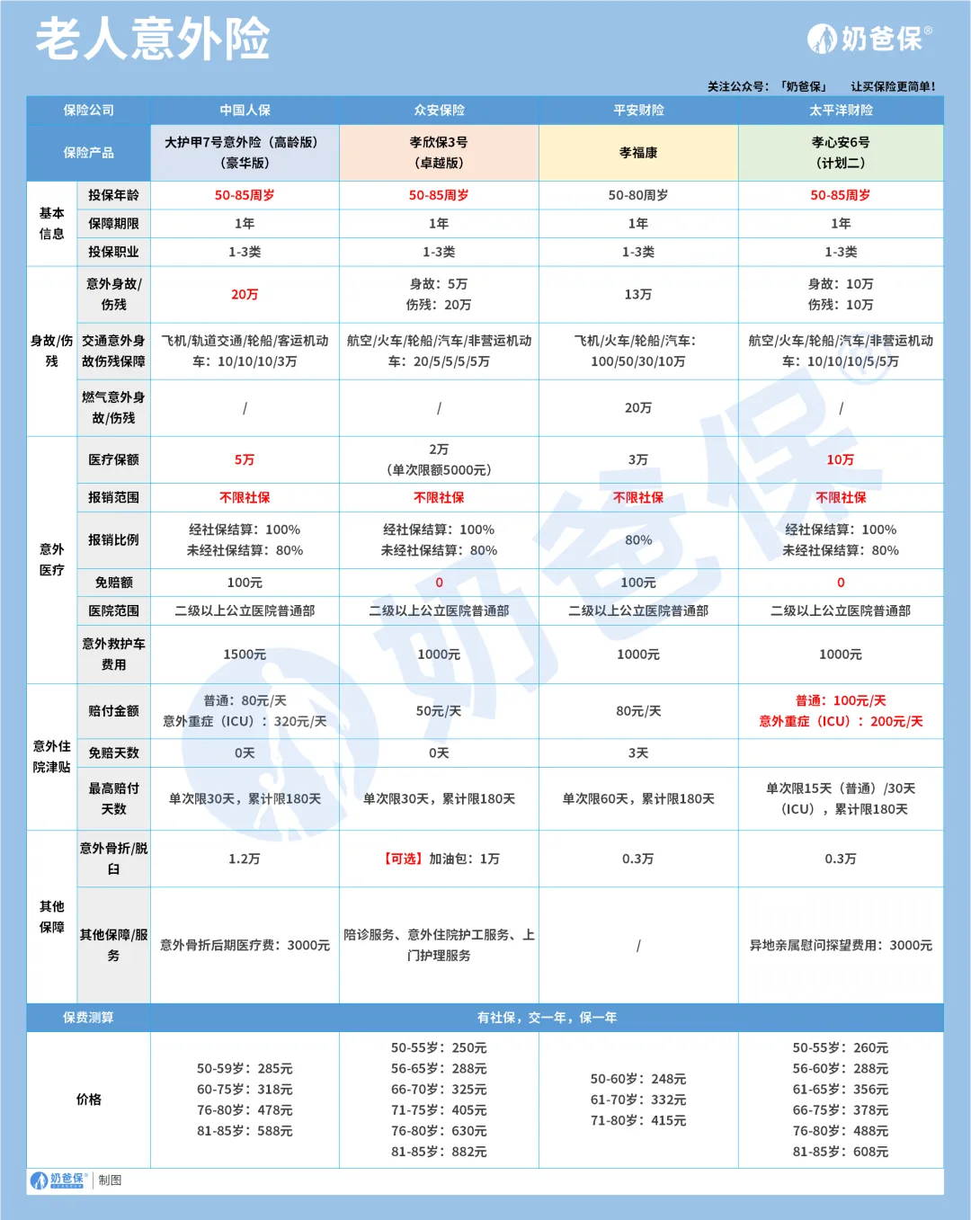 老年意外险基本信息如下: