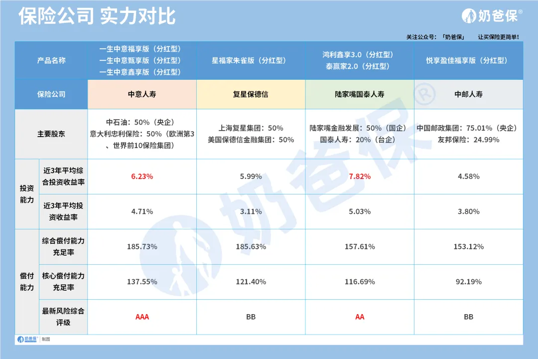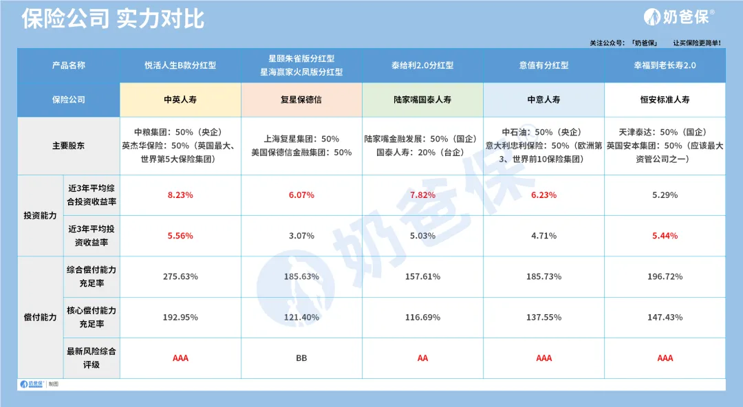 也同样给大家汇总了以上几款分红型年金险的保司实力: