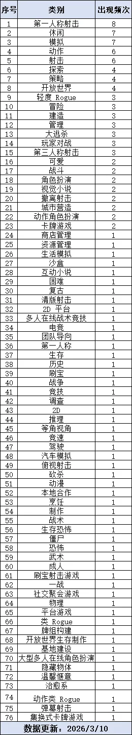 每日更新Steam游戏排行榜和热门标签,帮你快速掌握当前流行趋势。我们还会分析热门标签变化趋势,拆解热门新游玩法,分享引擎工具使用等其他实用信息,让你时刻掌握独游最新动态,找到游戏开发的灵感和方向。欢迎订阅!