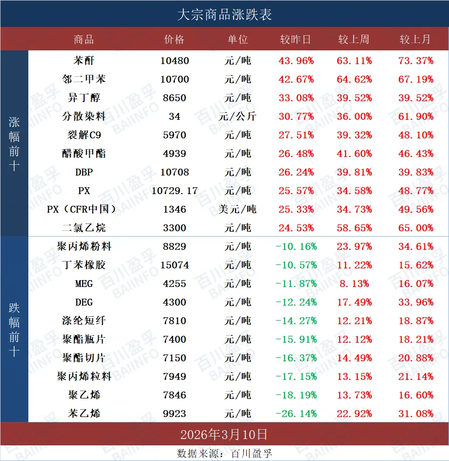 今日CPP膜市场向上运行,华东地区普通复合膜主流报盘在12000-13000元/吨,较前一工作日价格上涨21.36%。中东地缘冲突持续,OPEC产油国运储受限、被迫减产,能源供应担忧推升油价冲高;随后受G7拟释放战略储备、局势缓和预期影响,油价盘中回落、收盘跌破100美元/桶,聚丙烯粒料维持偏强,成本支撑强劲,叠加PP期货连续涨停,CPP报价随原料大幅上调,部分大厂暂停报价、封盘惜售,仅对老客户小单供货。