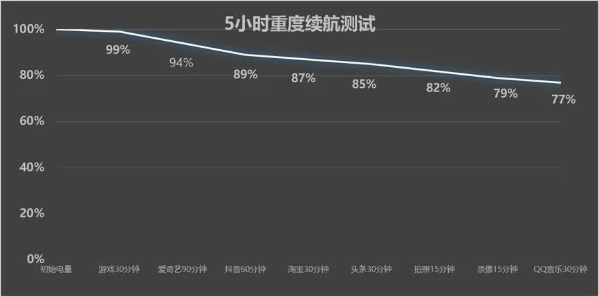 一加 Turbo 6同样配备了一块9000mAh大电池,通过创新材料提升了硅含量,有效提升能量密度的同时保证了机身轻薄。在实际续航表现上,经过五小时重度使用测试,包括游戏、视频播放、社交应用和拍照录像等场景,手机电量从初始的100%下降至77%,日常使用中基本可以实现一天一充,满足全天候使用需求。
