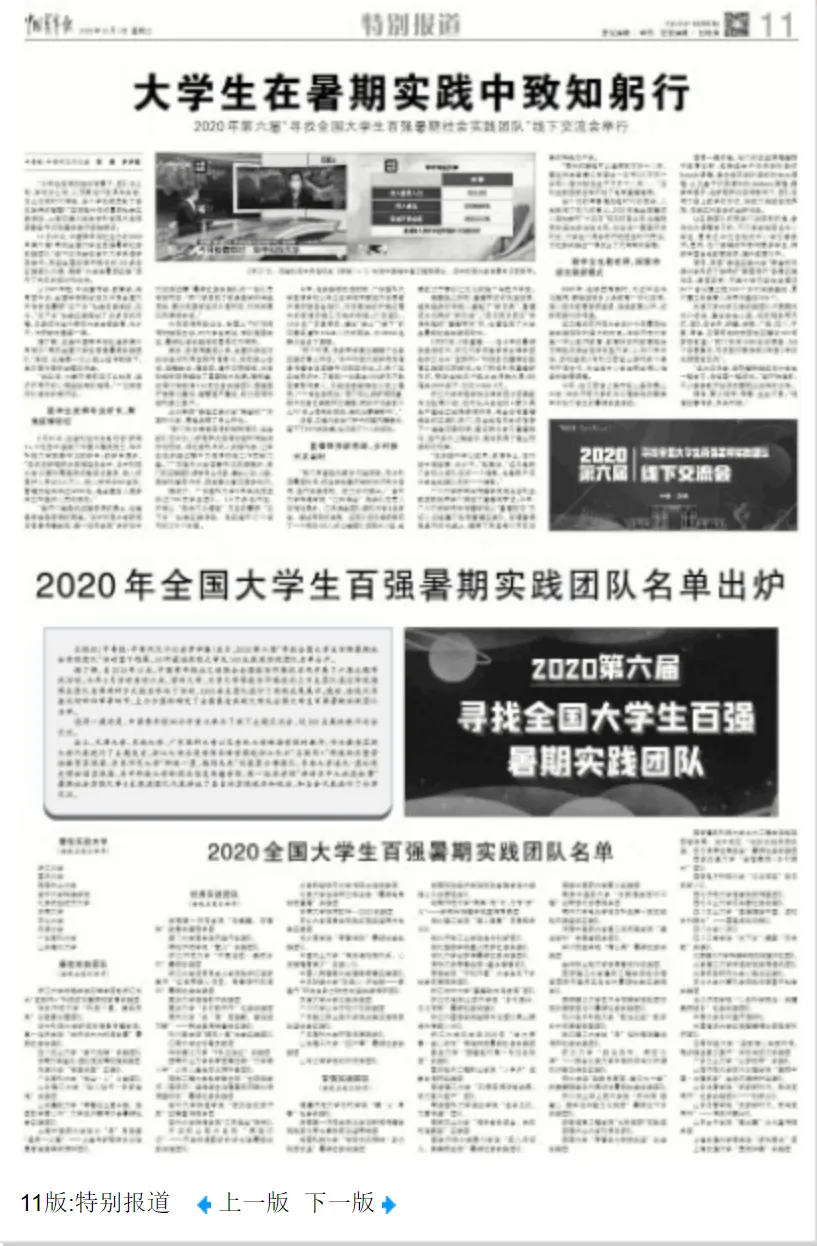 今年是“寻找全国大学生百强暑期实践团队”活动举办的第七年。“2020年第六届寻找全国大学生百强暑期实践团队”线下交流会现场为全国最佳实践大学、全国最佳/优秀/百强实践团队颁奖,多位实践团队代表也进行了分享交流。“寻找全国大学生百强暑期实践团队”活动旨在深入挖掘和展示大学生暑期实践中的优秀成果,充分发挥优秀团队的示范引领作用,进一步激发大学生了解国情、服务社会的主动性,培养创新精神,提升责任感和使命感,引导大学生不断探求社会主义核心价值观的深刻内涵,聚集践行社会主义核心价值观的强大力量。寻找最优秀暑期实践团队,展示大学生暑期实践的优秀成果,展现大学生暑期实践的青春活力,激发大学生参与暑期社会实践活动的积极性和创造性。