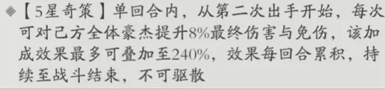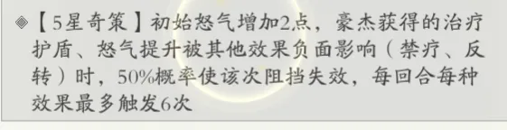 理由:叠满3层可使被施加效果的豪杰降低对自己的30%命中,150%的最终伤害,可持续3回合。但只有对自己生效,并不能对友方生效,性价比中等。