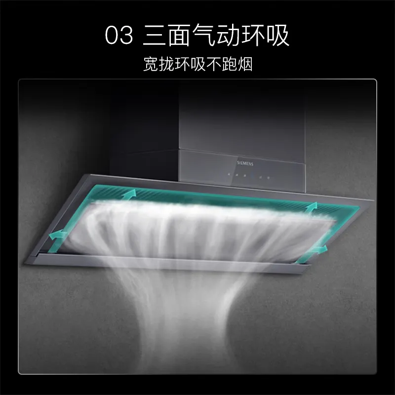 不到两千块能买到德系精工品质,西门子这款诚意满满。它最大的亮点在于出色的降噪技术,实测噪音仅为53dB,烹饪环境非常安静。23m³/min的均衡吸力足够满足日常所需。它的外观偏向经典的欧式设计,能够完美适配各种嵌入式橱柜,是追求静音和外观质感朋友的入门优选。