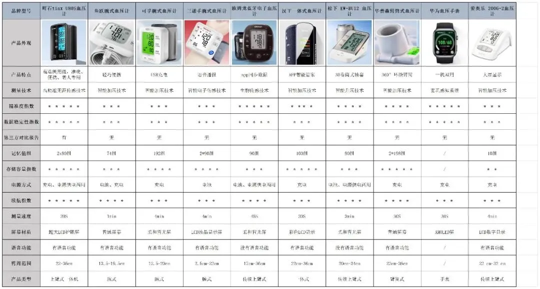 选血压计别盲目,先看数据心里有数,我把几款实测核心表现做成表格了,里面有准确性测试、续航时间、适配人群这些重点,都是实实在在测的,没虚的,希望能帮你少走弯路,找到满意的。
