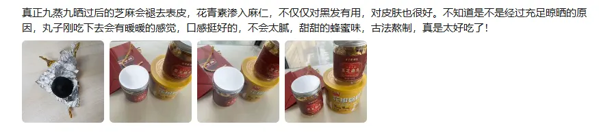 从口感角度看,好的工艺是灵魂。比如“九蒸九晒”,不仅能提升营养吸收率,更能让芝麻的香气充分释放,口感变得油润细腻,苦涩味大大降低。而用天然蜂蜜代替白砂糖调和,则带来了清甜不腻的自然甜味。这解决了“好吃”的问题。