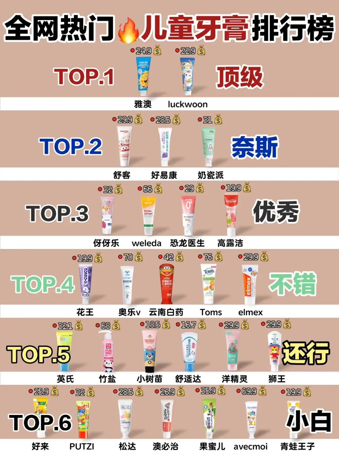 3岁到6岁防蛀效果比较牛的儿童含氟牙膏安利: