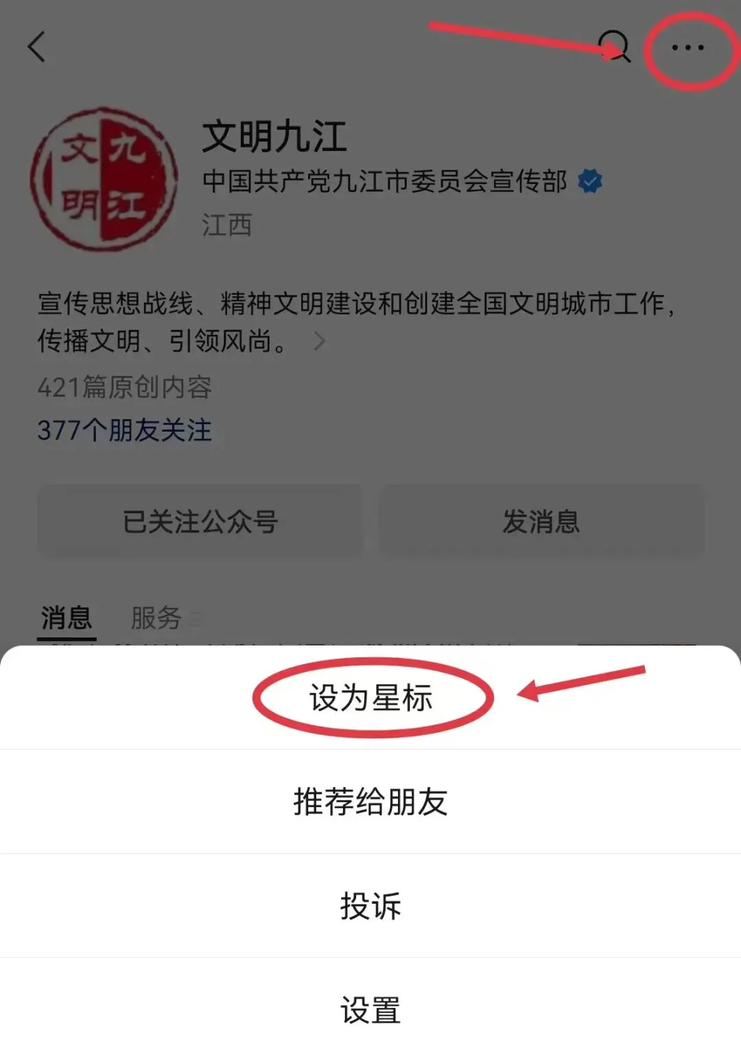 请大家记得把“文明九江”设为“星标★”