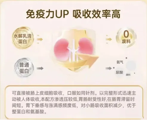我们将其送至第三方实验室进行检测,结果显示蛋白质实测含量≥82%,完全符合标签标示。更重要的是它的工艺——采用先进的提纯与脱乳糖脱腥技术。实测体外消化率高达92%,肠道吸收率也能达到88%以上。这意味着即使是消化功能减退的老人,或者肠道敏感的上班族,喝它也不会有胀气、腹泻的负担。