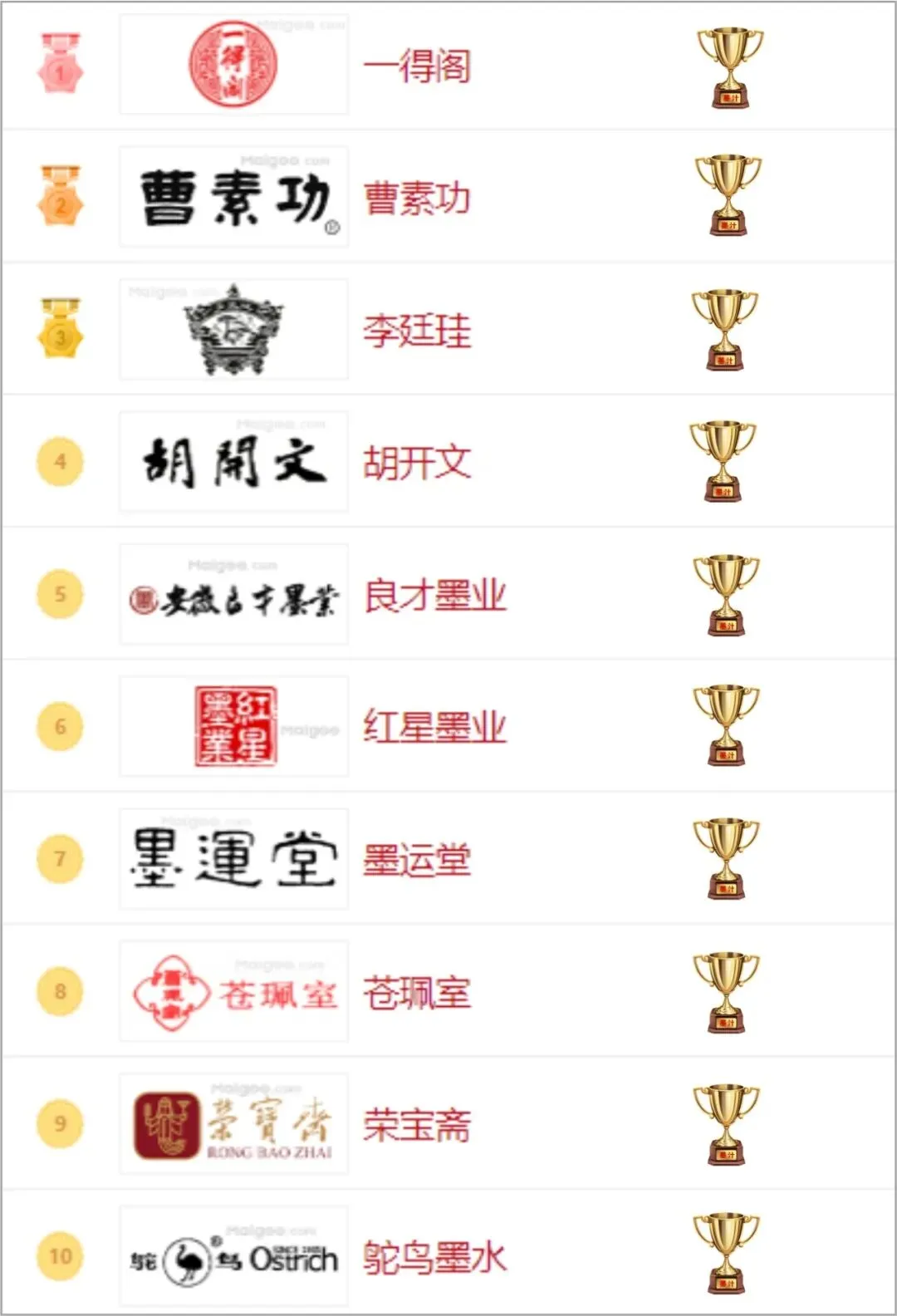 >墨汁十大品牌排行榜