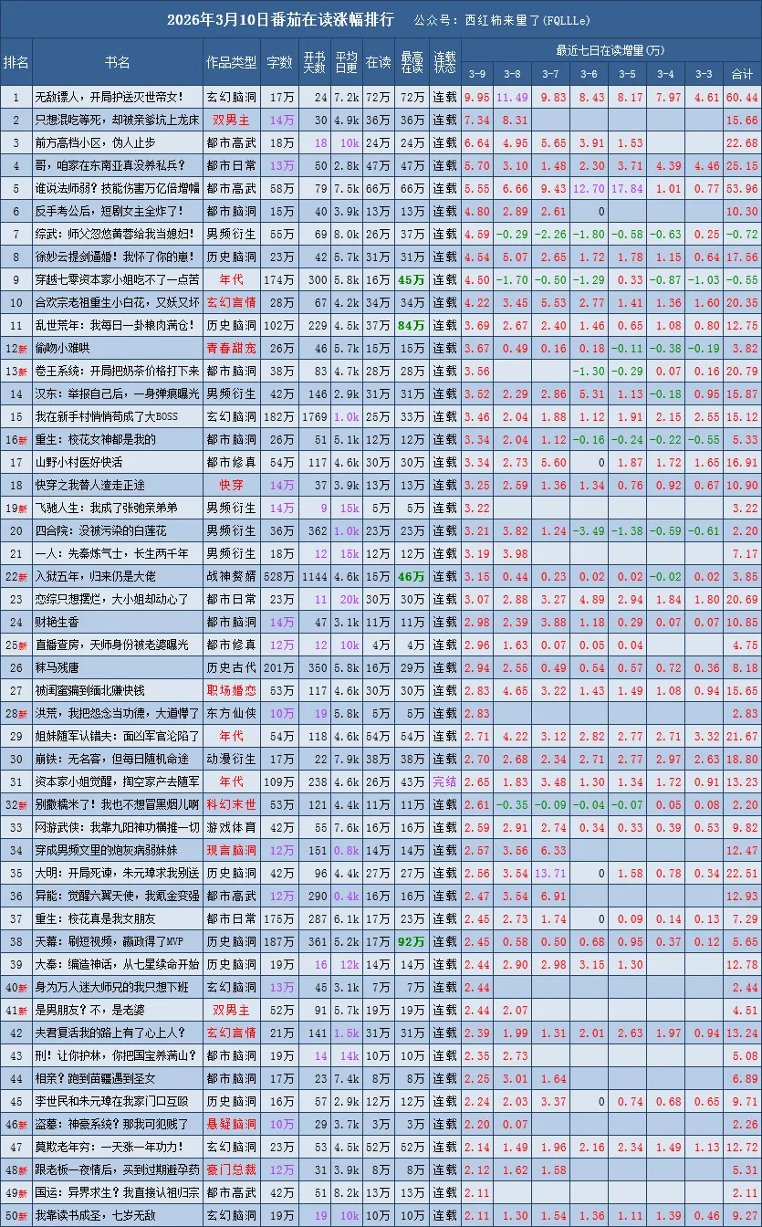 是根据番茄原创新书榜、阅读榜的在读数据