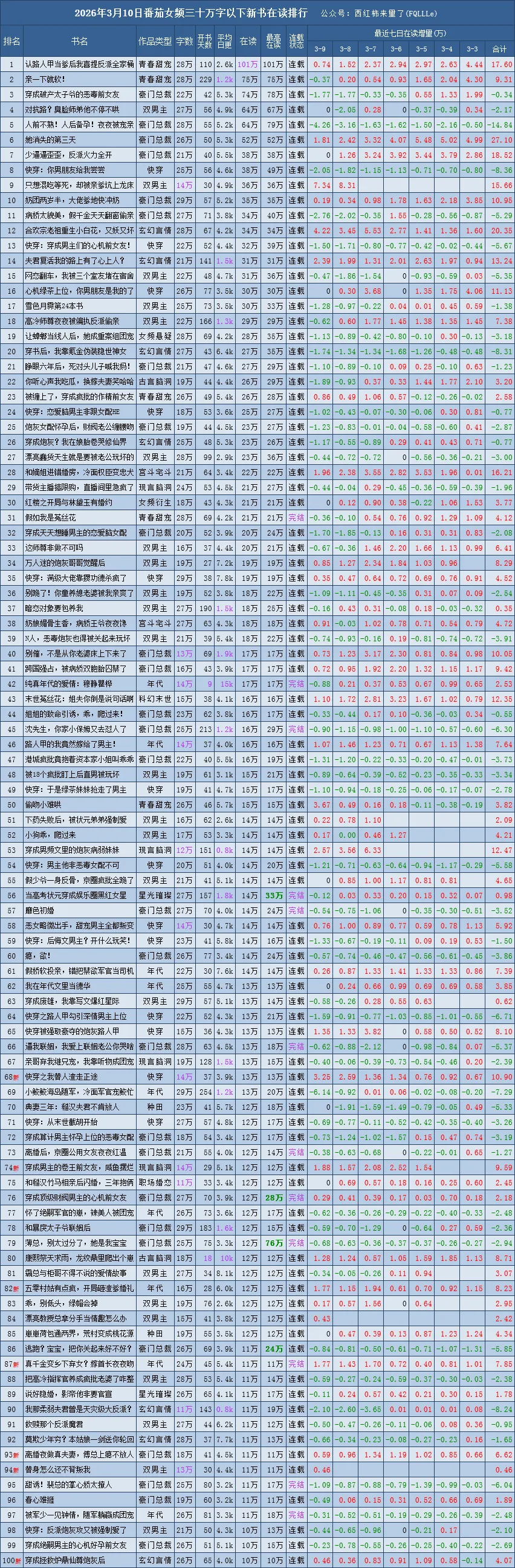 平均日更字数的计算方式,为总字数÷从开书到最后一次更新天数,所以有断更的作品会比实际偏低