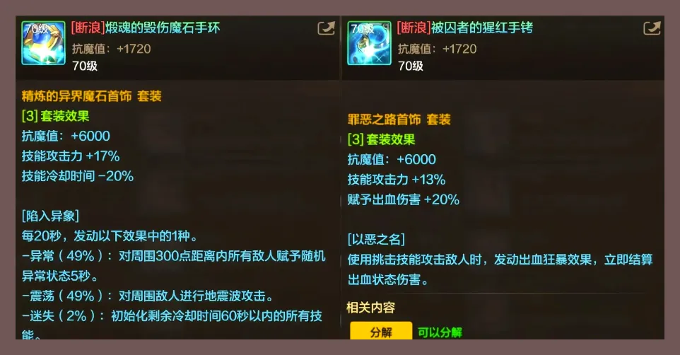 因此现在输出向首饰的思路其实很清晰:先保证暴击达标,再追求技能攻击力、结算机制以及循环质量。也正因为这样一条逻辑的存在,《精炼套》和《罪恶之路》才得以进入第一梯队。前者为高频重置加高收益技能组合,后者为出血瞬时结算+爆发稳定型阵容搭配方式,在副本中节奏把握很好