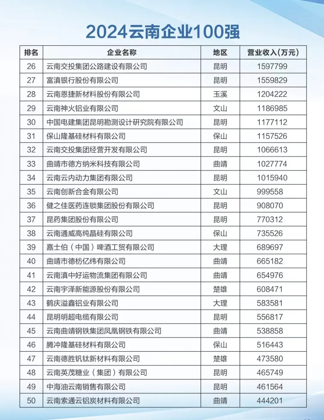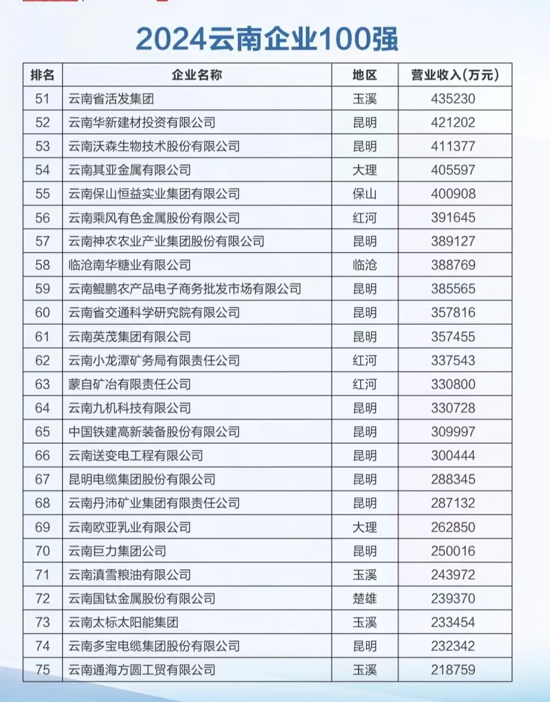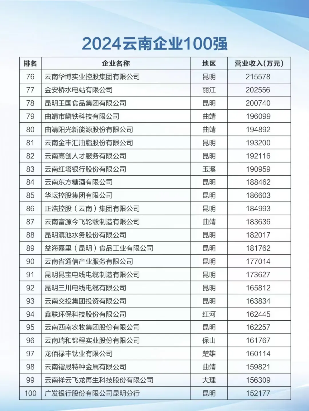 据悉,2024云南企业100强排序发布活动是云南省第17次发布云南企业100强榜单,由云南省企业联合会、云南省企业家协会参照国际通行法则和中国企业联合会、中国企业家协会发布的中国企业500强排序办法,按照企业自愿申报的原则,以2023年企业营业收入为入围标准进行评选和发布。