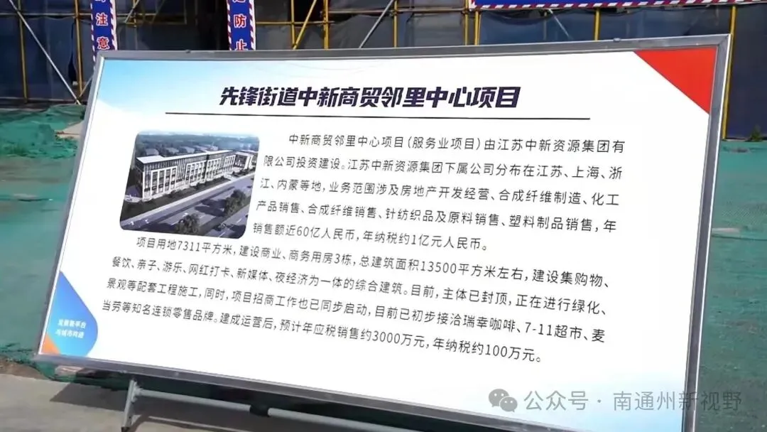 前段时间,通州区领导带队实地观摩了先锋街道的中新商贸邻里中心项目,负责人透露今年7月实现竣工验收。