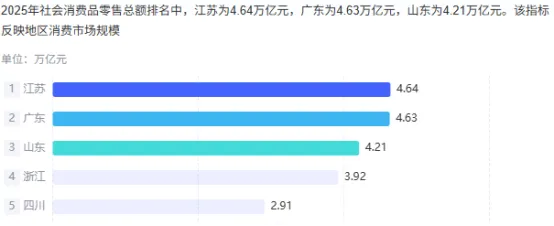 2025年江苏社会消费品零售总额达4.6万亿元,首次超越广东成为全国第一消费大省,得益于全省万亿级城市群的消费优势,消费潜力在8000多万人口中全面释放。从居民收入来看,江苏城乡居民人均收入比值为2.02,差距持续缩小,全域协同发展的红利切实惠及全体民众。