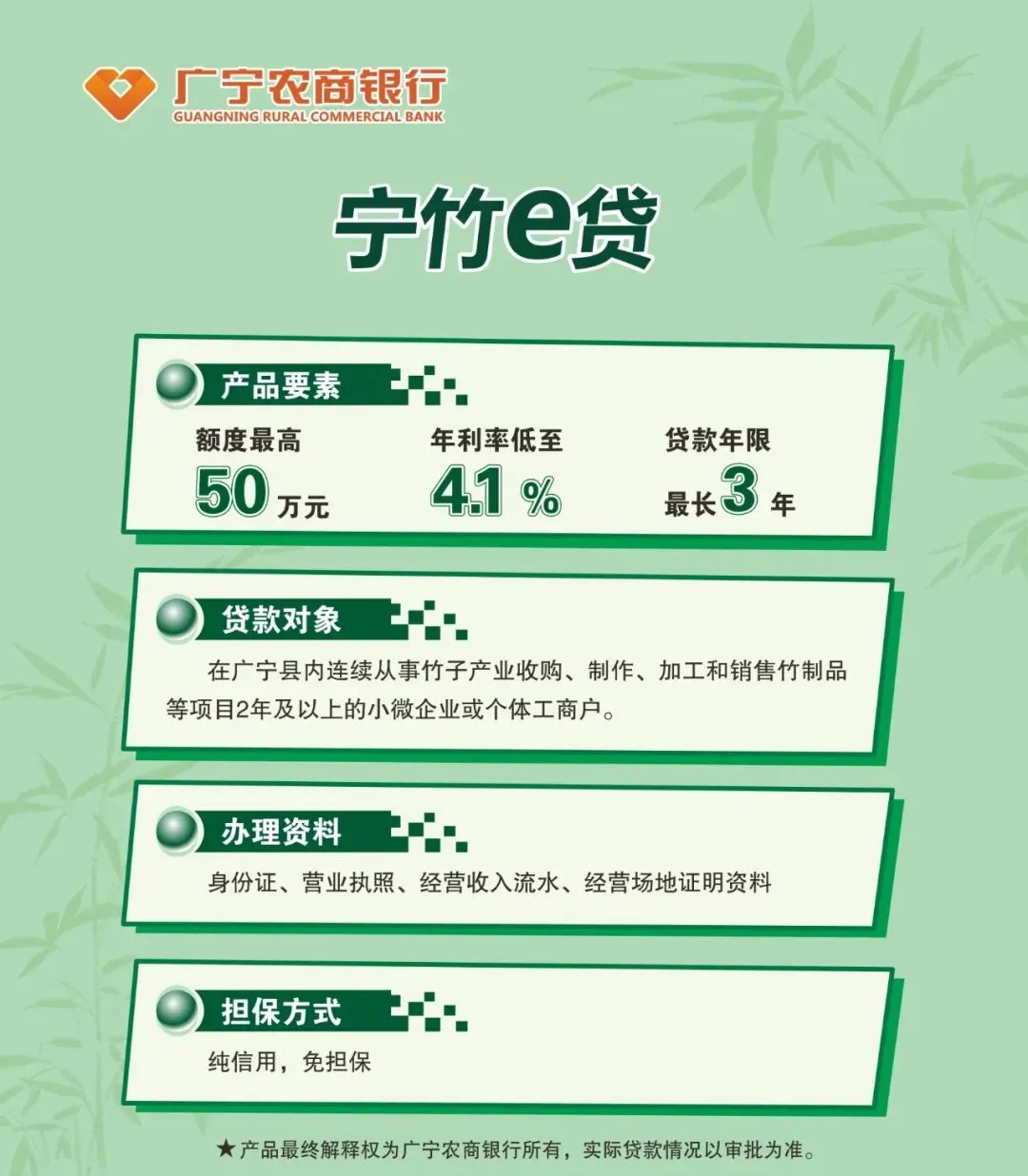 金融活水精准滴灌。 “碧水-竹海-文旅”EOD项目获农发行30亿元授信,国企平台融资5.26亿元,“宁竹e贷”等专项产品授信超4.5亿元。创新开发“竹林贷”等专属信贷产品,为竹产业全链条提质升级提供坚实资金保障。