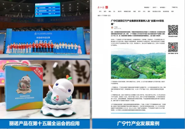 科技创新赋能产业升级。依托国际竹藤中心、浙江农林大学等科研力量,共建国家“以竹代塑”创新研究院广宁分院、广东广宁竹林生态系统定位观测研究站。广东嘉禾屿新材料将竹材转化为高端服装面料、无人机结构件;广宁美好生活塑料制品研发的“PP+竹纤维”餐具,成本较全塑产品降低5%,推动产业从“粗加工”向“高附加值”转型。