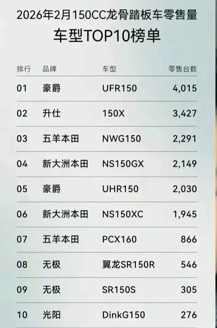 2026年2月国内125CC与150CC踏板车销量榜单出炉,不同细分市场的排名变化,既折射出品牌竞争力的此消彼长,也反映了普通消费者购车决策的核心逻辑。
