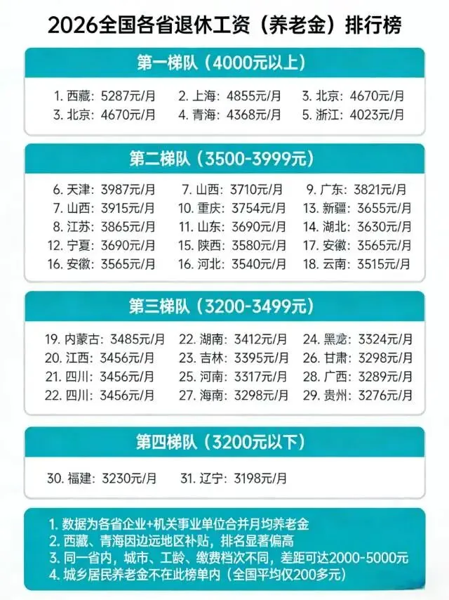 直到我看到这份2026年全国31省退休工资(养老金)排行榜,盯着那悬殊的差距,我沉默了许久。也在申报副高的最后关头,毅然选择了弃权——不是不努力,而是我终于想通:比起硬扛职称换待遇,放过自己,或许才是更明智的选择。