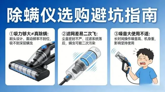 尘盒密封不严、过滤系统落后,吸进的螨虫可能又跑出来,反而增加了二次污染风险。
