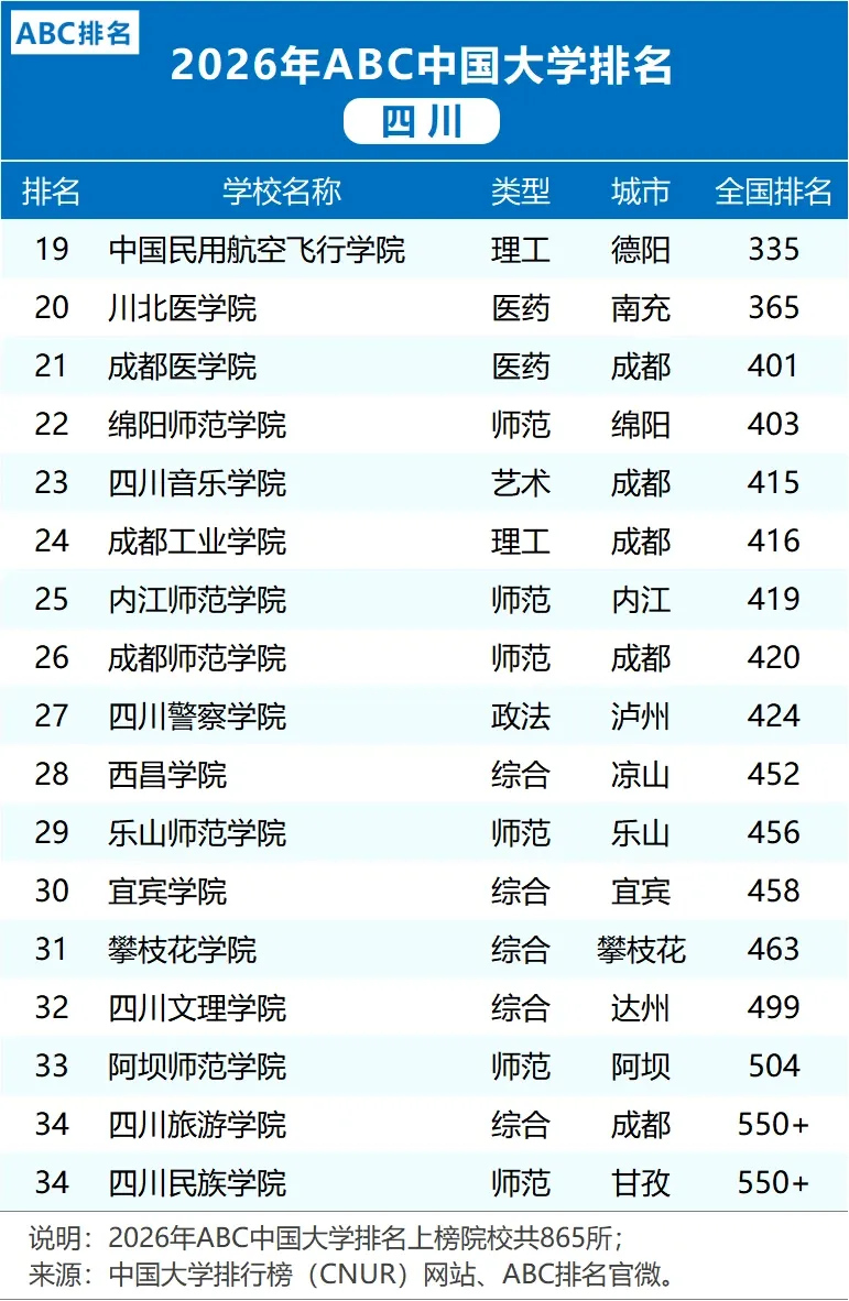 2026年四川省大学排名,4所闯进全国百强,附择校攻略!