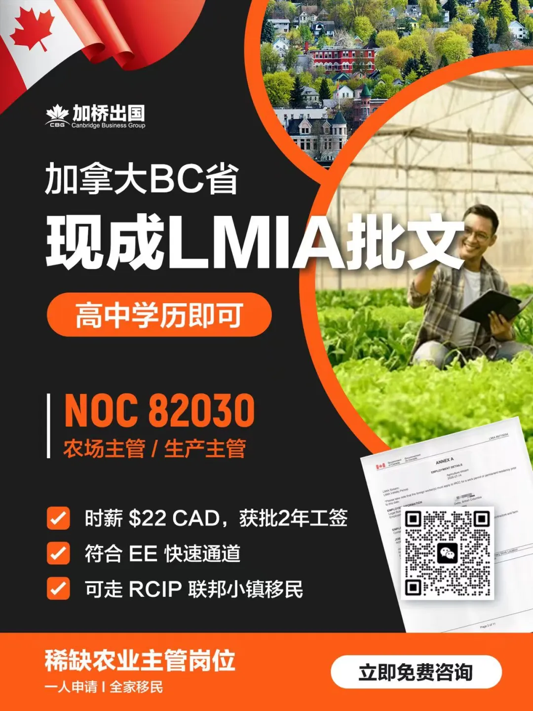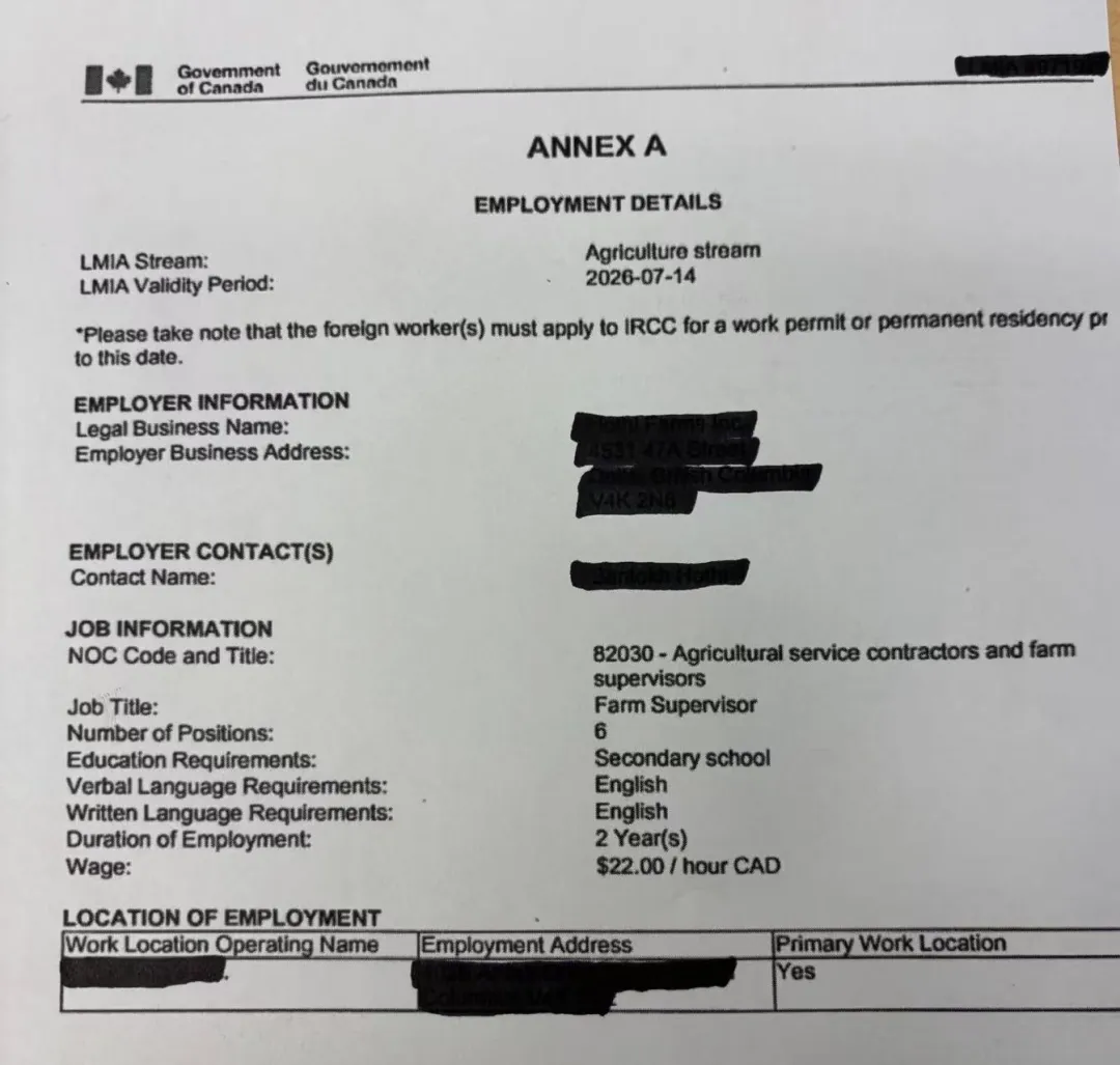 🔥BC省现成LMIA批文,农场主管 / 生产主管(NOC 82030)岗位开放,工作地点位于🇨🇦 Nelson,可获批2年工签,时薪22加币,高中学历即可申请⏳,符合EE快速通道,并有机会通过RCIP联邦小镇通道实现全家移民👨👩👧👦。名额紧缺,先到先得。