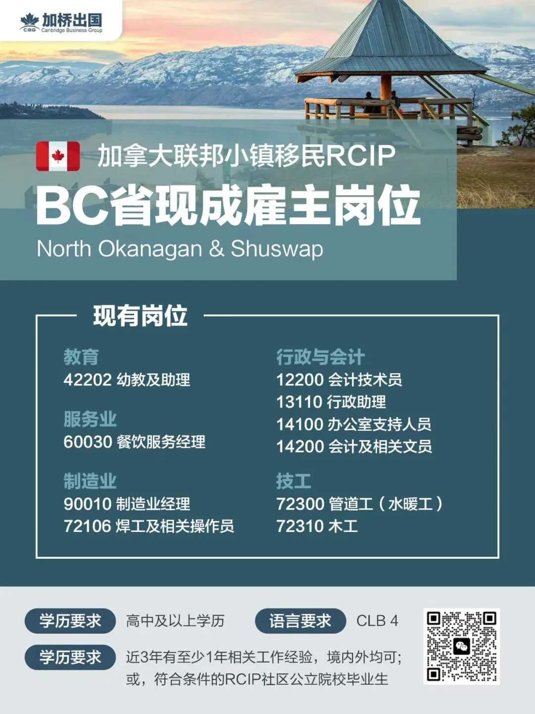 🔥加拿大🇨🇦RCIP小镇项目,位于BC省North Okanagan-Shuswap地区,现有优质雇主提供幼教及助理🧸、餐饮🍳、建筑、行政财务等热门岗位💼,真实可靠,名额非常紧缺⏳,立即咨询优先锁定机会!