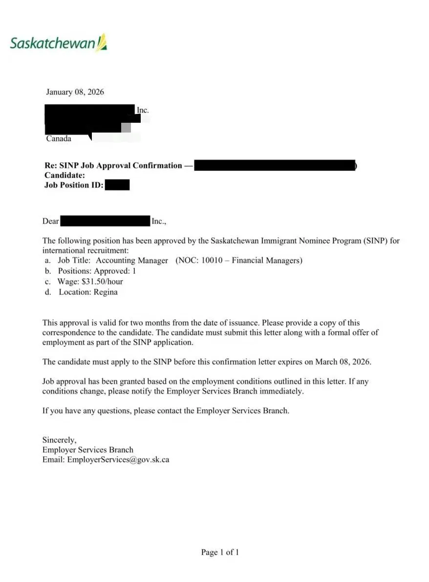 萨省空白JAL财务经理岗位获批