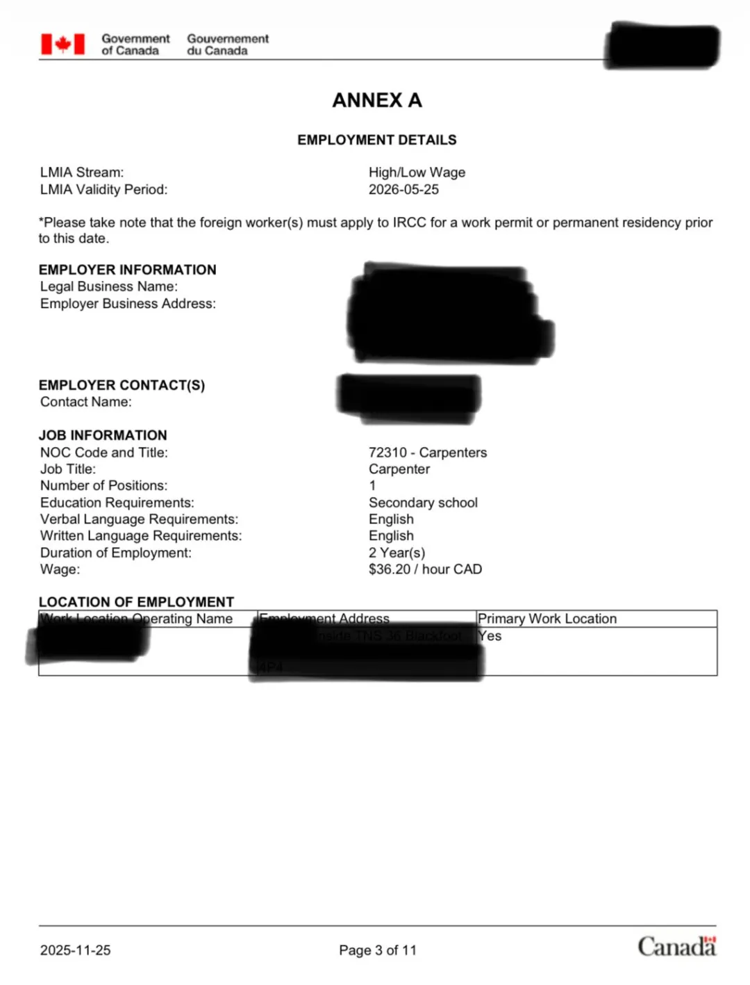 🇨🇦加拿大现成 技工类LMIA批文