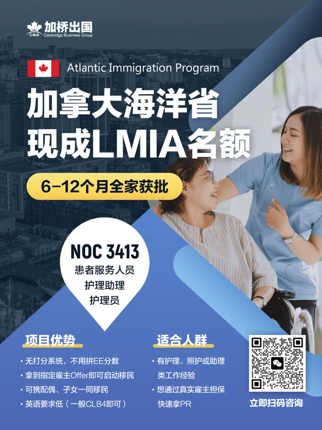 🌊 AIP 大西洋移民项目,指定雇主直招,无打分系统、不拼 EE 分数,拿到雇主 Offer 即可启动移民流程,审理快,约 6–12 个月全家获批 PR,可携配偶和子女一同移民,英语要求低(通常 CLB4 即可)。目前开放海洋省养老院岗位(NOC 3413 护理助理/护理员),真实雇主担保,名额有限,先到先得 🍁