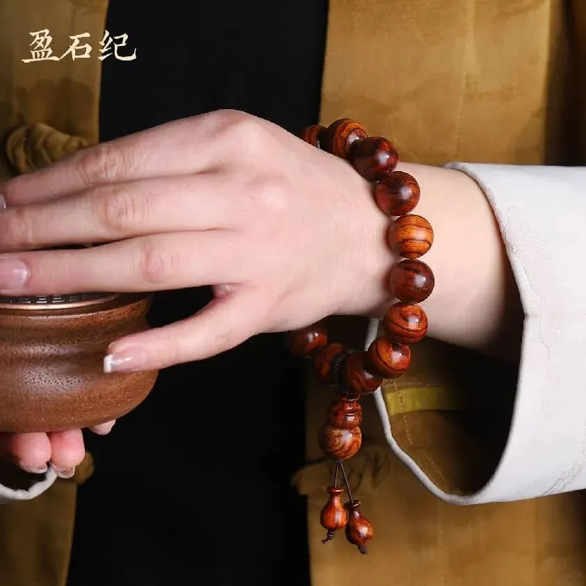 2.舒缓心绪:黄花梨自带天然降香,香韵清雅绵长、不刺鼻、不浓烈,久闻不腻,搭配其细腻温润的触感,能有效平复烦躁情绪、缓解日常焦虑。在快节奏的生活中,佩戴一串黄花梨手串,既能点缀穿搭,也能为人们提供一份身心安宁的慰藉,帮助保持平和从容的心态。